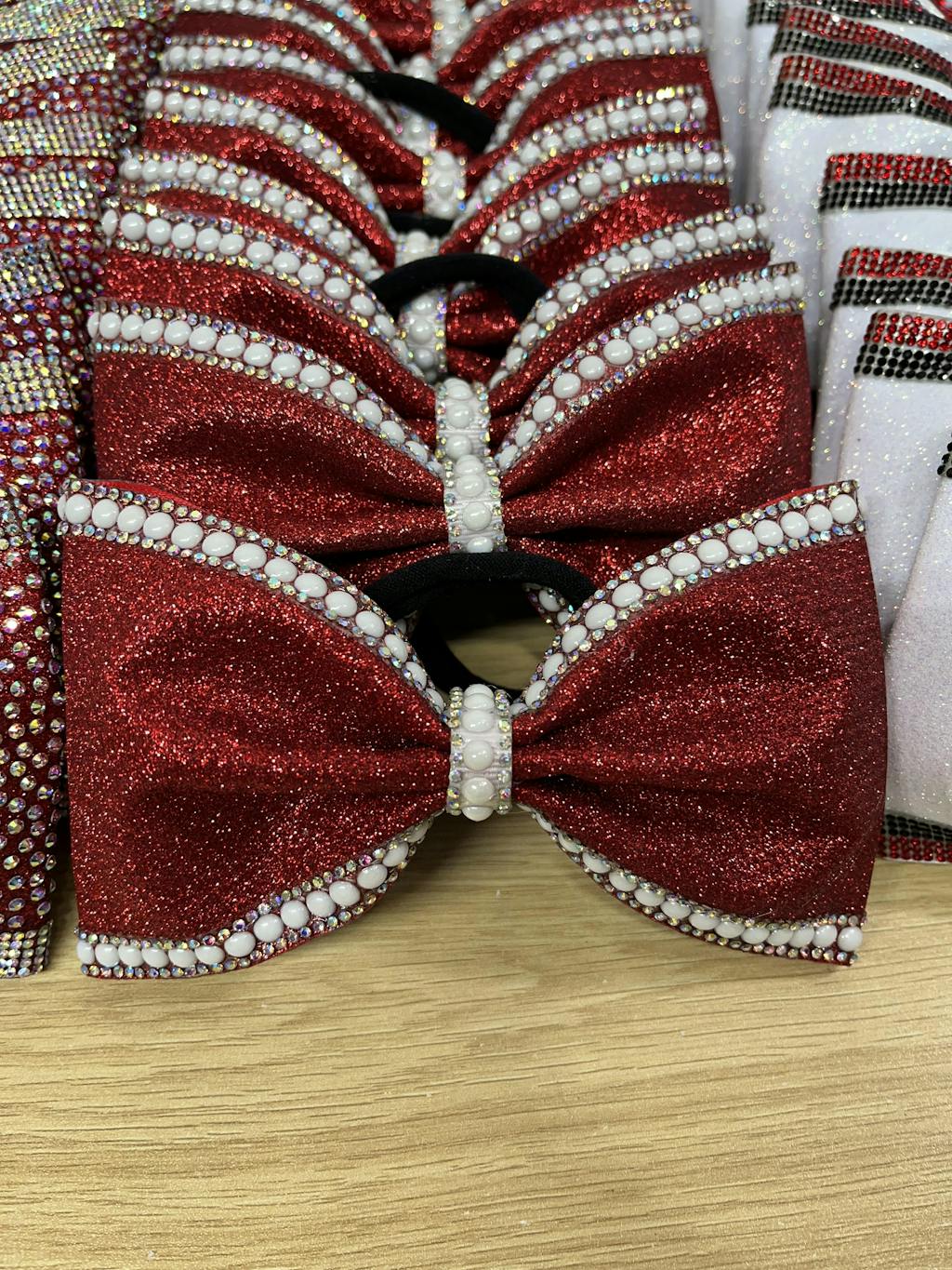 Perfect for cheer bows, and centers, adding detail to pillows, shoes, and uniforms. Just cut to your desired size and press!